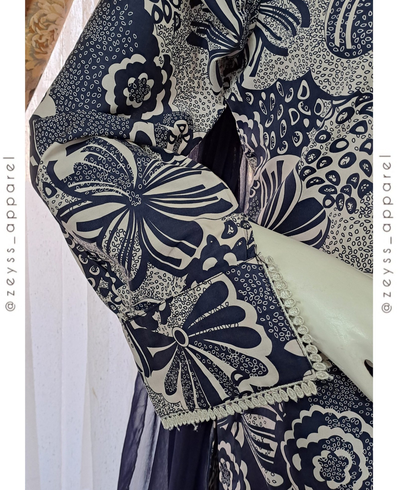 ✅️ Chiffon Dupatta Embellished with Shirt Fabric and two side lace.